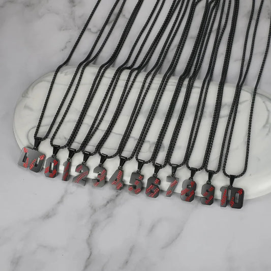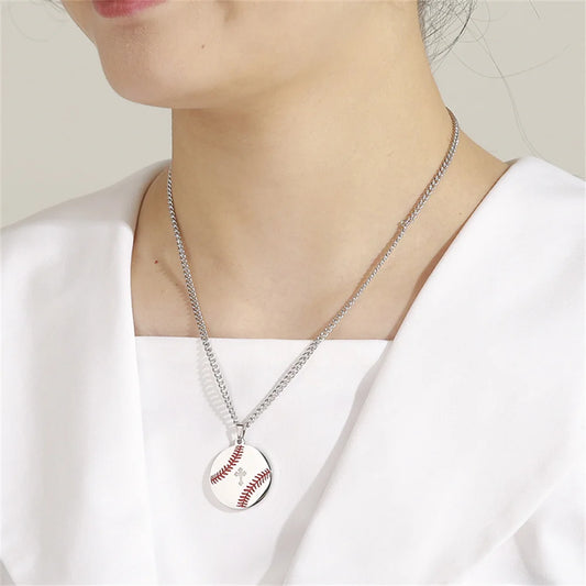 Stainless Steel Baseball Pattern Number Pendant Necklace