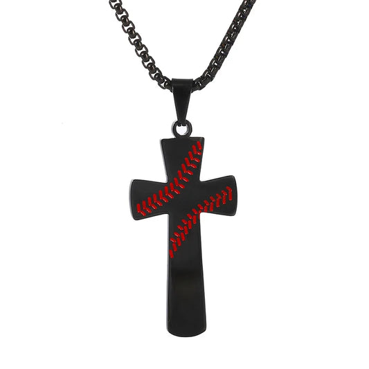 Stainless Steel Baseball/Football/Soccer Cross Necklace
