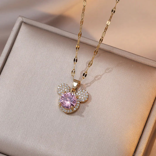 Stainless Steel Crystal Zircon Butterfly Pendant Necklace