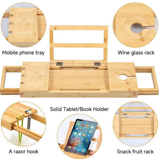 Adjustable Length Bamboo / Plastic Bathtub Shelf
